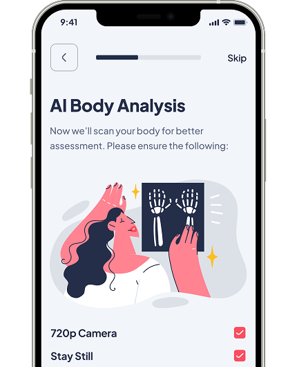 Understand your health better through a guided AI assessment that adapts to your body, habits, and daily wellness needs.